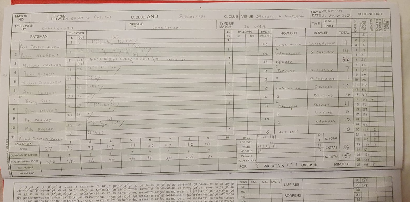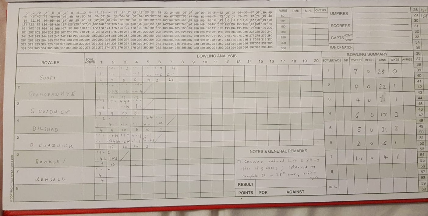 for a single which was very unfortunate as he was severly injured. He was 46 not out at the time and did return to hit a