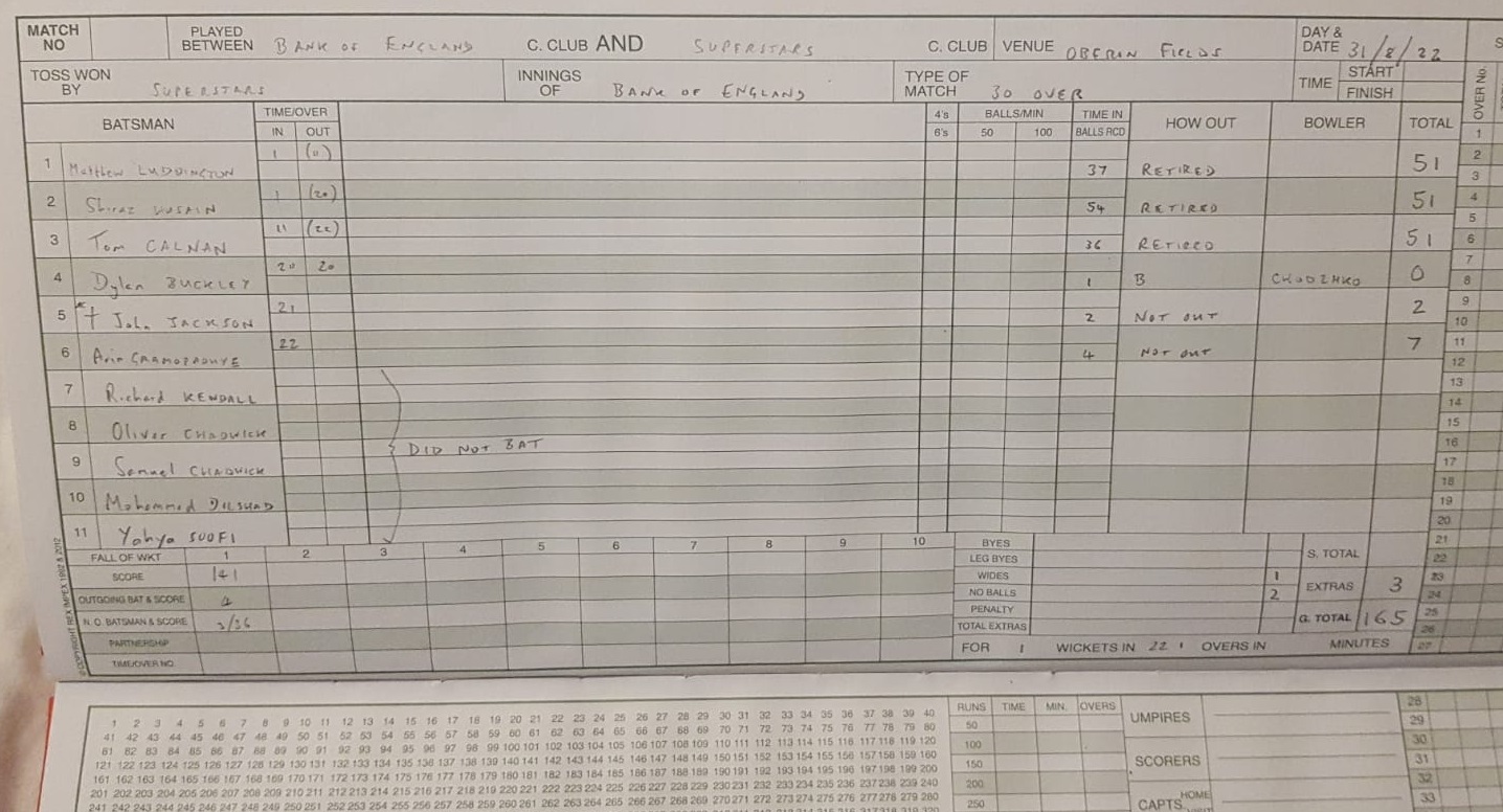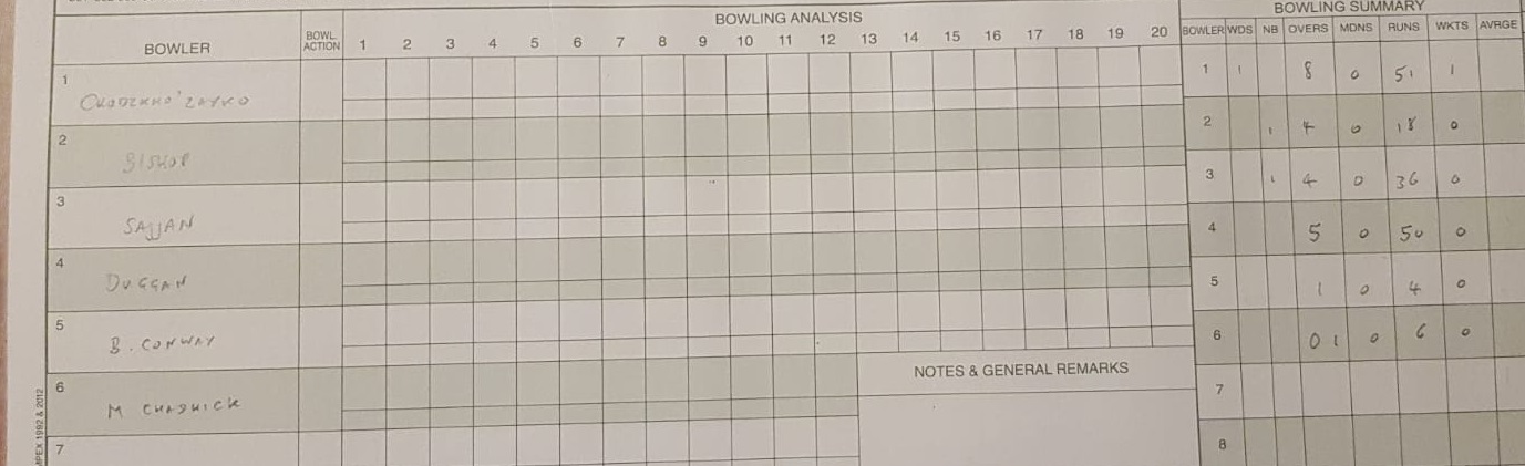 for a single which was very unfortunate as he was severly injured. He was 46 not out at the time and did return to hit a