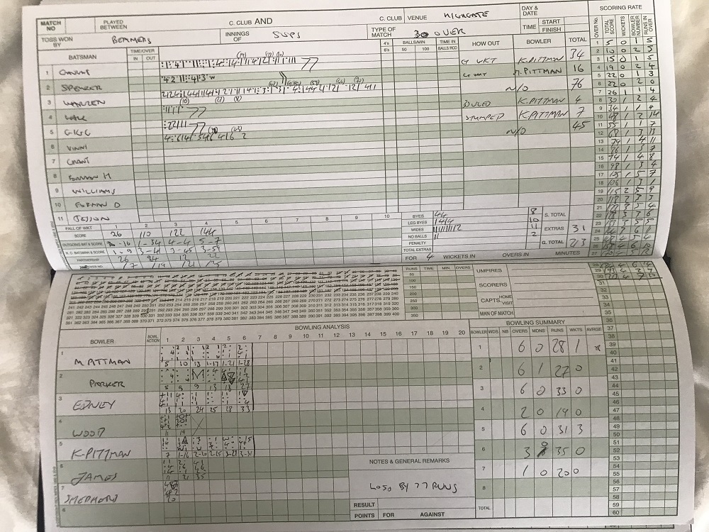 game in given the morning rain and (incorrect) forecast. Carcking innings from George and Vinni and despite the scorecard a