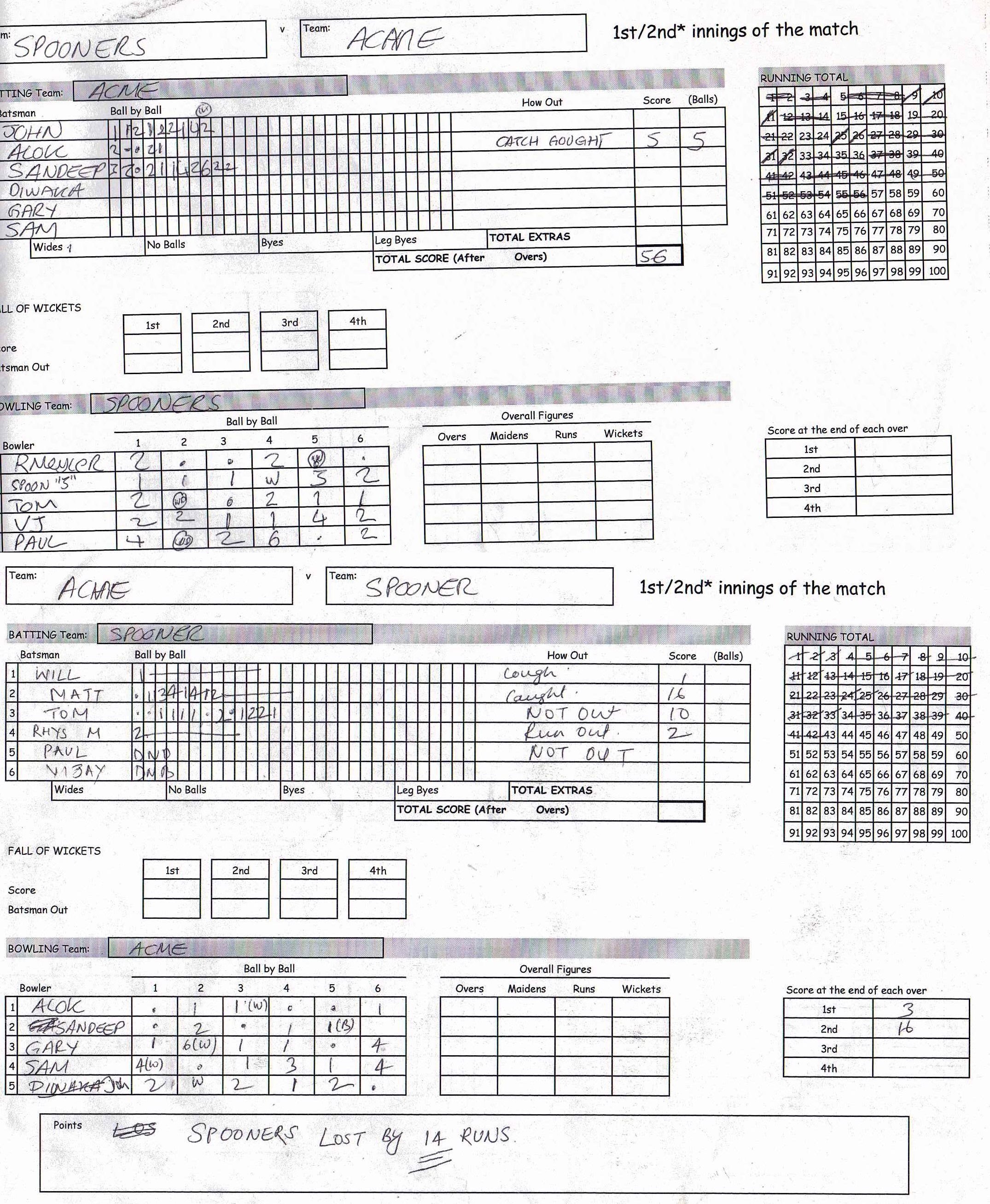 ACME (115 points) beat SPOONERS (10 points) by 14 runs |