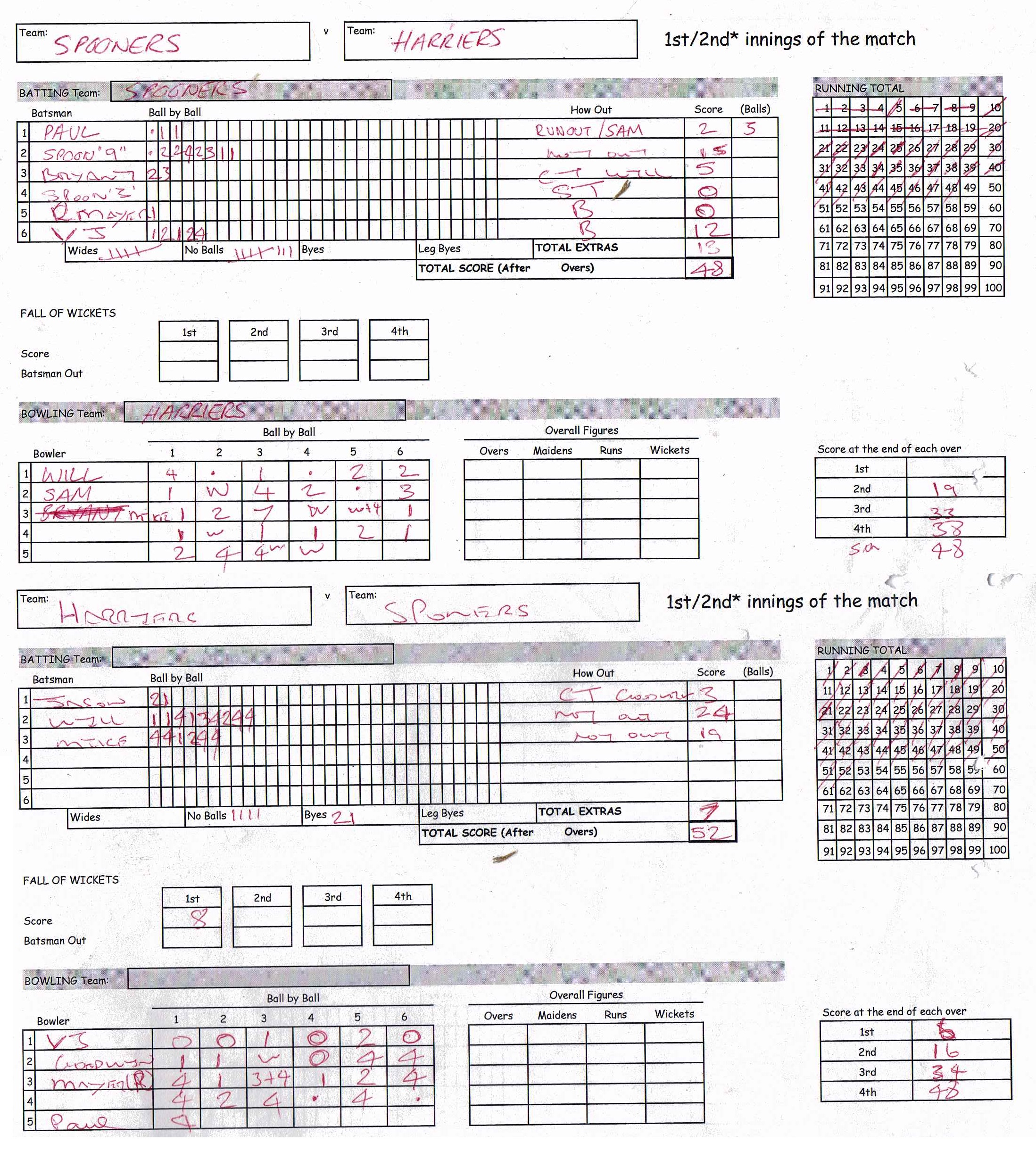 HARRIERS (110 points) beat SPOONERS (15 points) in the final over |