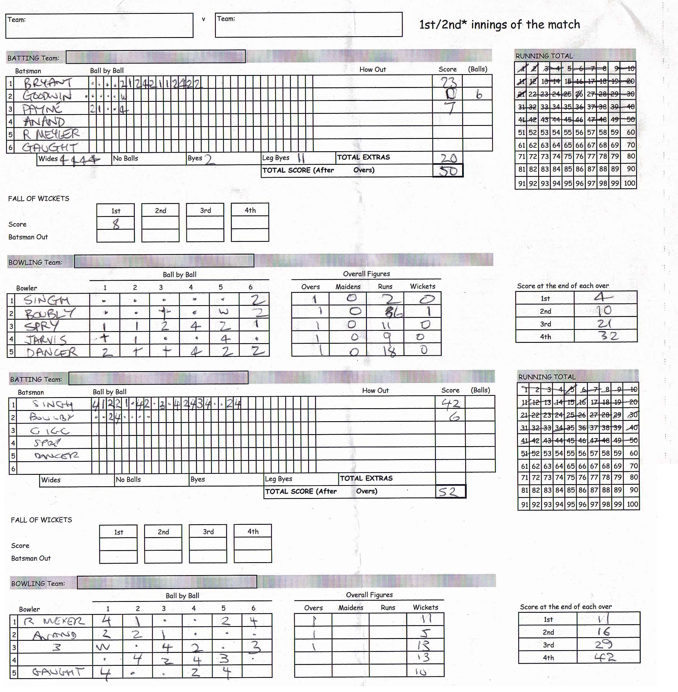 SUPER SIX (110 points) beat HARRIERS (15 points) in the final over. |