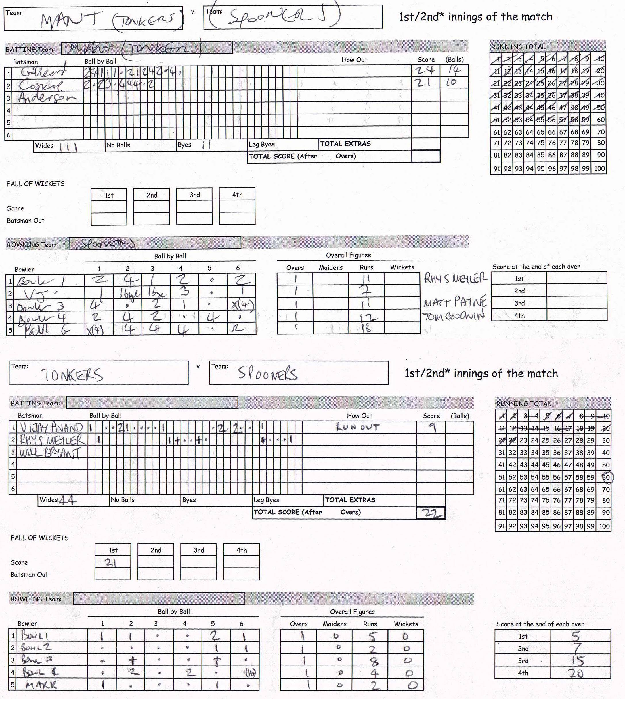 TONKERS (120 points) beat SPOONERS (5 points) by 37 runs |