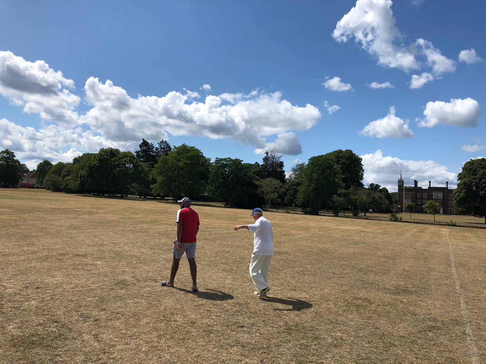 nervous when the ball headed his way but thankfully he held the catch off Alfie's bowling. |