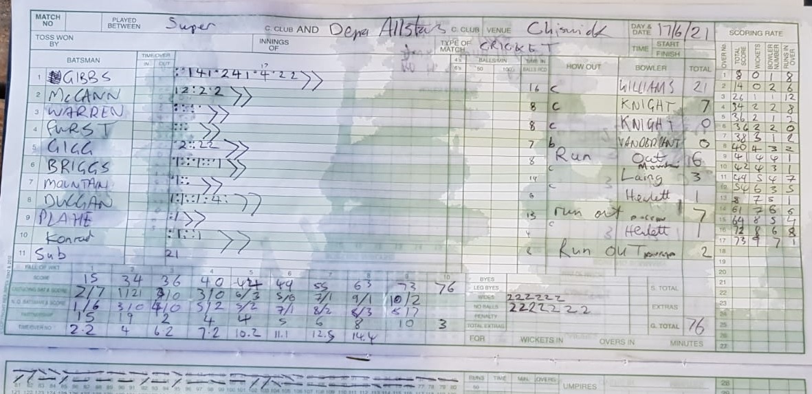 Superstars collapse, which left us all out for 76, with at least 20 of those contributed by our old