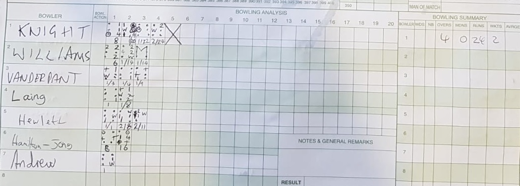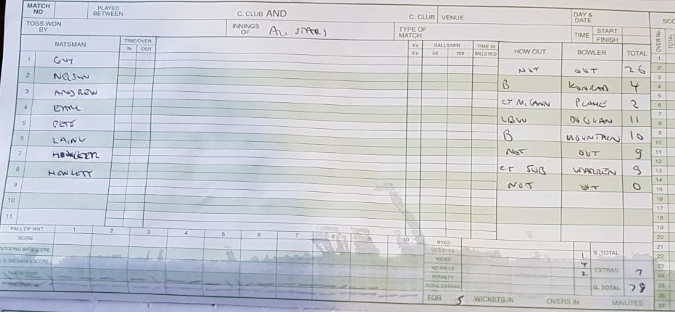 and a glorious cover drive by Michael Duggan at the end, which was the only boundary scored after
