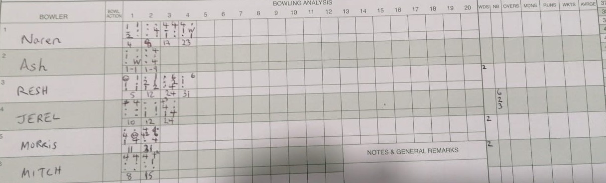 and Ali (10 n.o.) and Harris (12 n.o.) to finish off in style, with Aaron’s 6 to win getting us home with