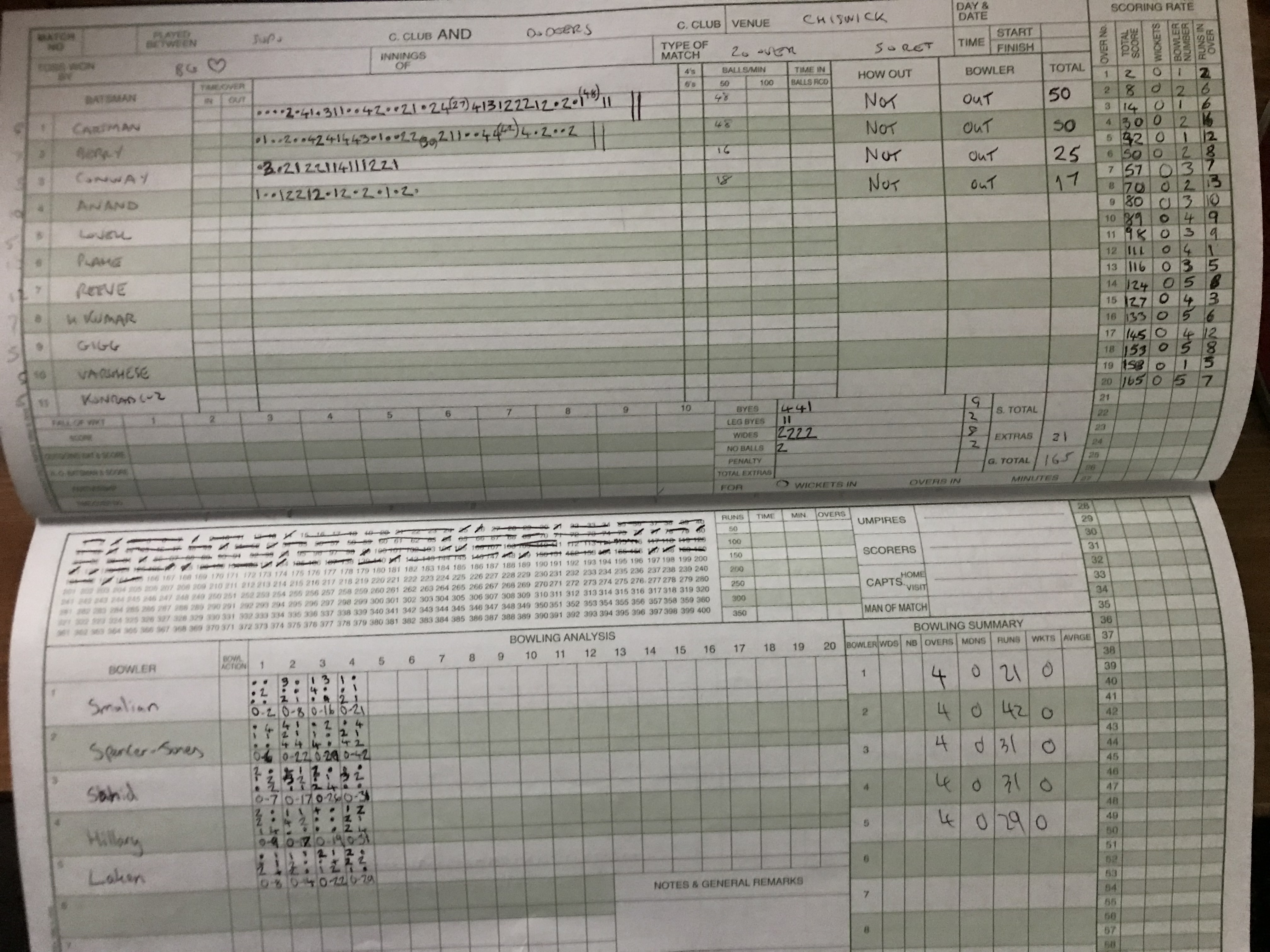 After 16 overs Dodgers were 110-2 and while not out of the game Jack Lovell and Harish Kumar kept John Hilary and Tim