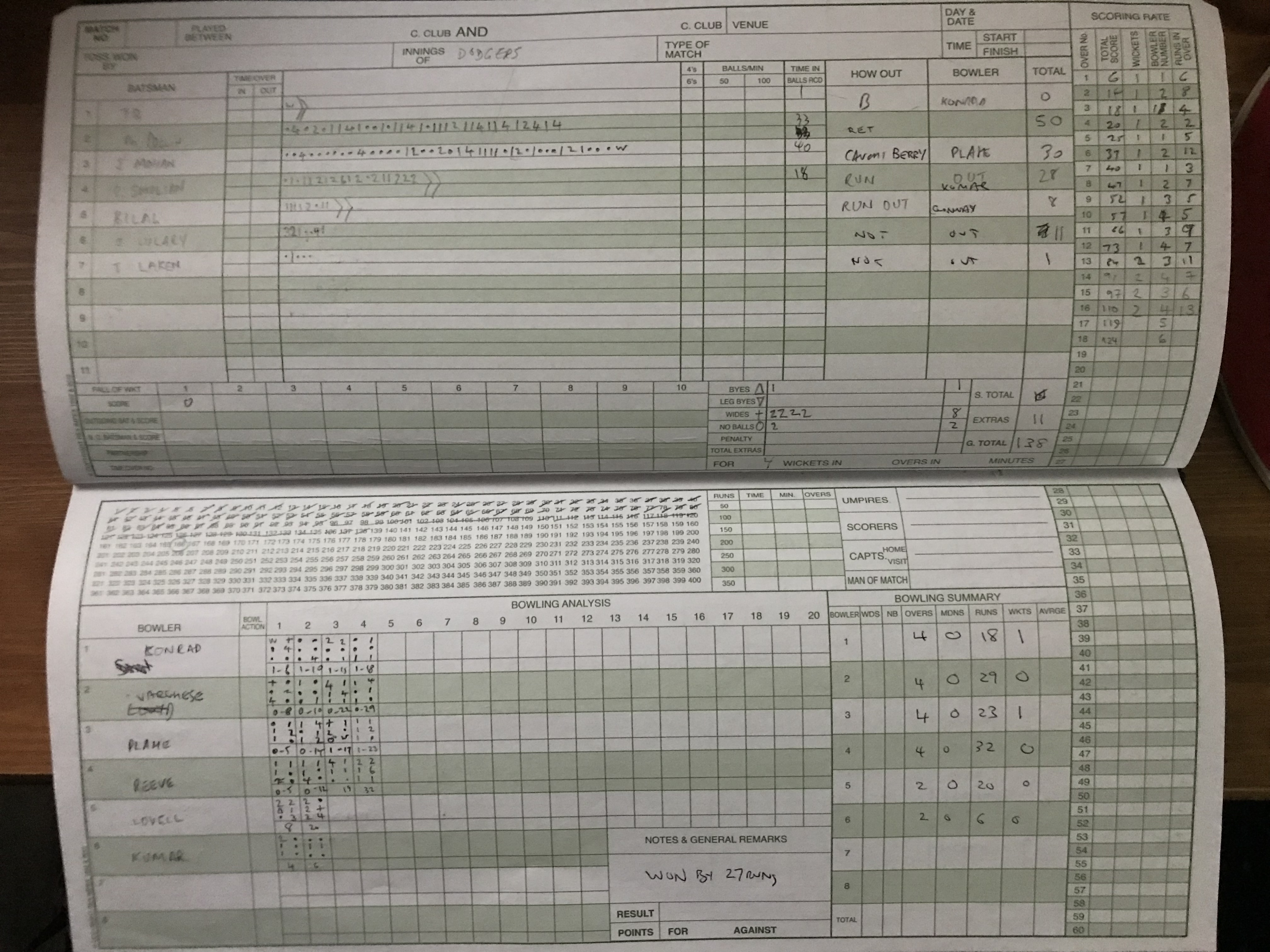 wicket of Mohan (caught Berry for 30) while Dollin retired (50 off 33 balls) and Kumar and Conway picked up run outs.