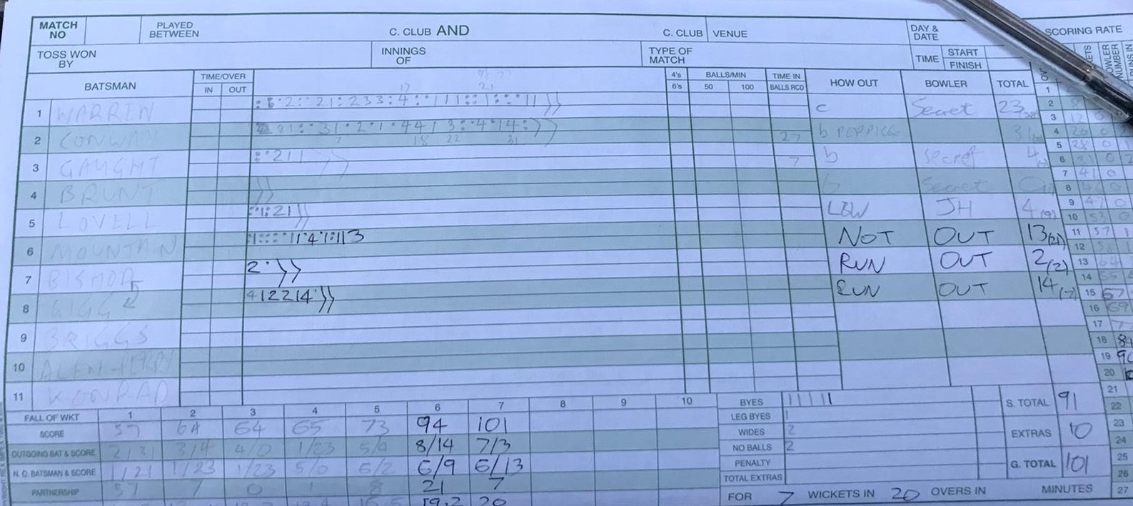 This felt like a below par score, and with Warren (23) and Conway's (31) glorious opening partnership