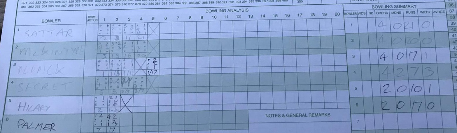 At this point Dodgers deployed a bowler called Secret (4-2-7-3) and as you can see from his figures,