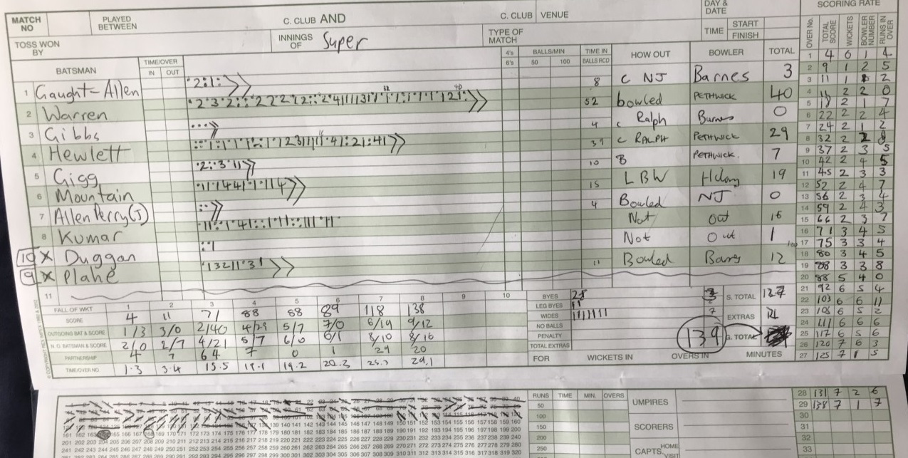 innings around but unfortunately (the newly named) Gaught-Allen and Gibbs were out early.
