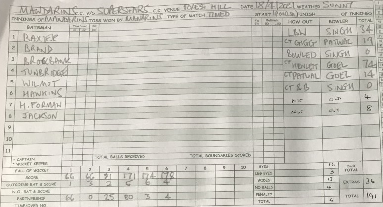 Matt C, Barry and George's flatmate Al all made it to 25 before retiring so the first wicket fell at