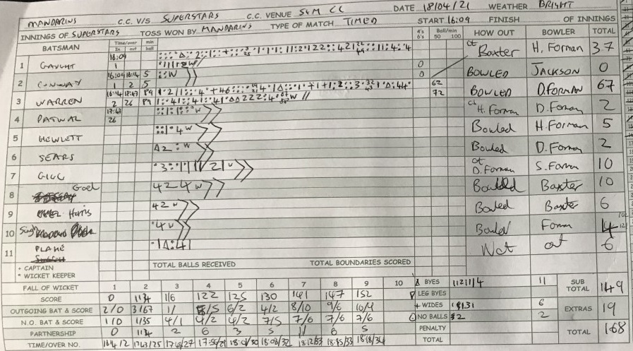 around 100, a flurry of late wickets and a run out off the last ball which would prove vital