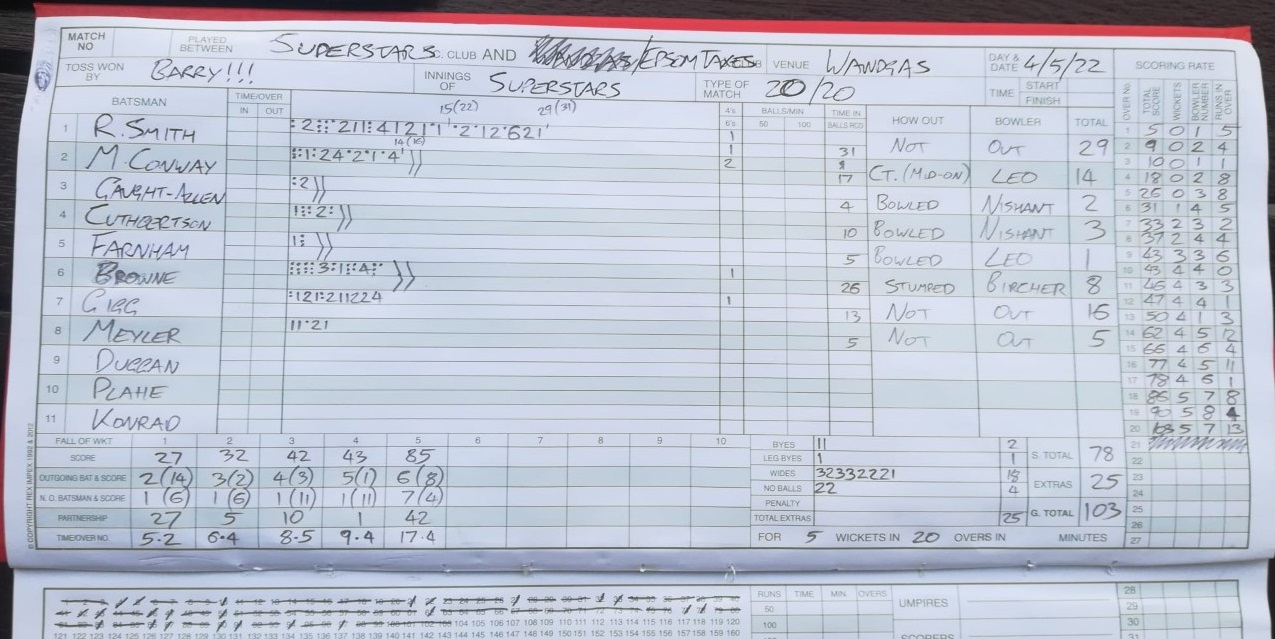 29 of 31 balls, before Browne was stumped off a wide, looking to up the rate. This gave the famous