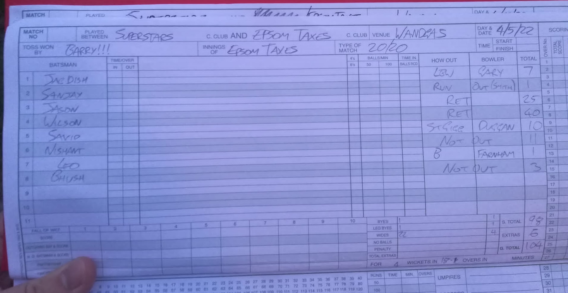 first over. Once they'd both retired, Nos. 3 and 4 had put Epsom into a commanding position.