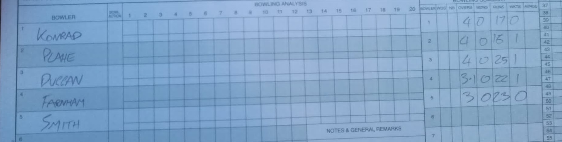 total in a row that offered something to bowl at, but probably wasn't enough. |