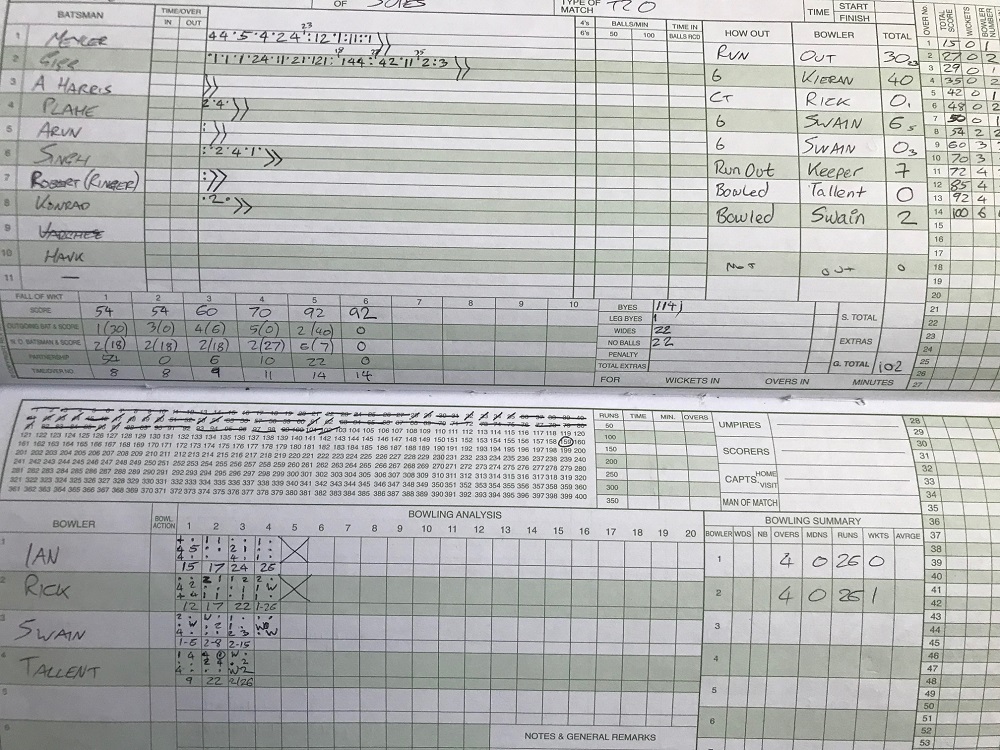 Team: Gigg (c), S Meyler, Harris, Plahe, Arun, Singh, Robert the Ringer, Chodzko-Zajko, Havk. [Varghese no show]