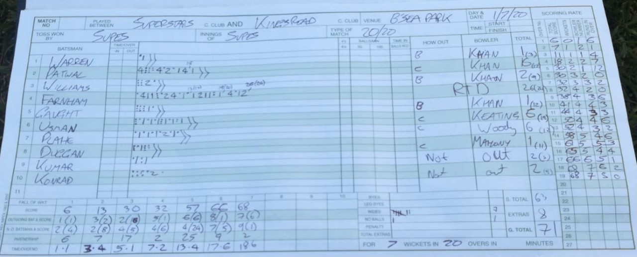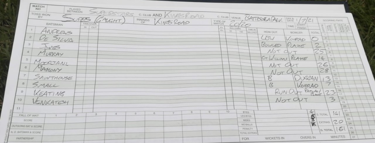 and Konrad got a couple of handy not outs to ensure we weren't bowled out and got what one of