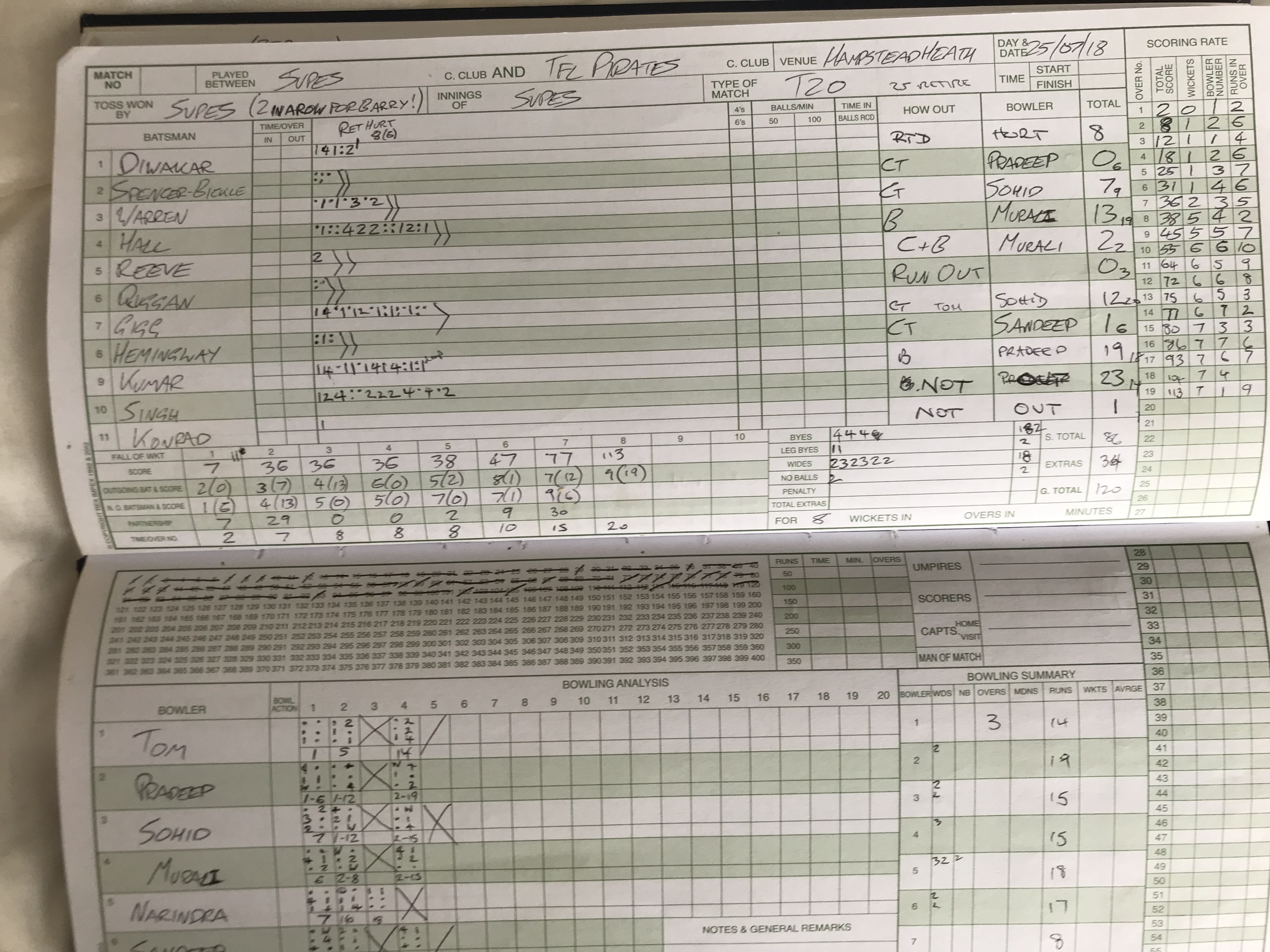 five for (5-25) + Konrad's 4 overs only went for 5 runs and Alok took 2 wickets in the penultimate over