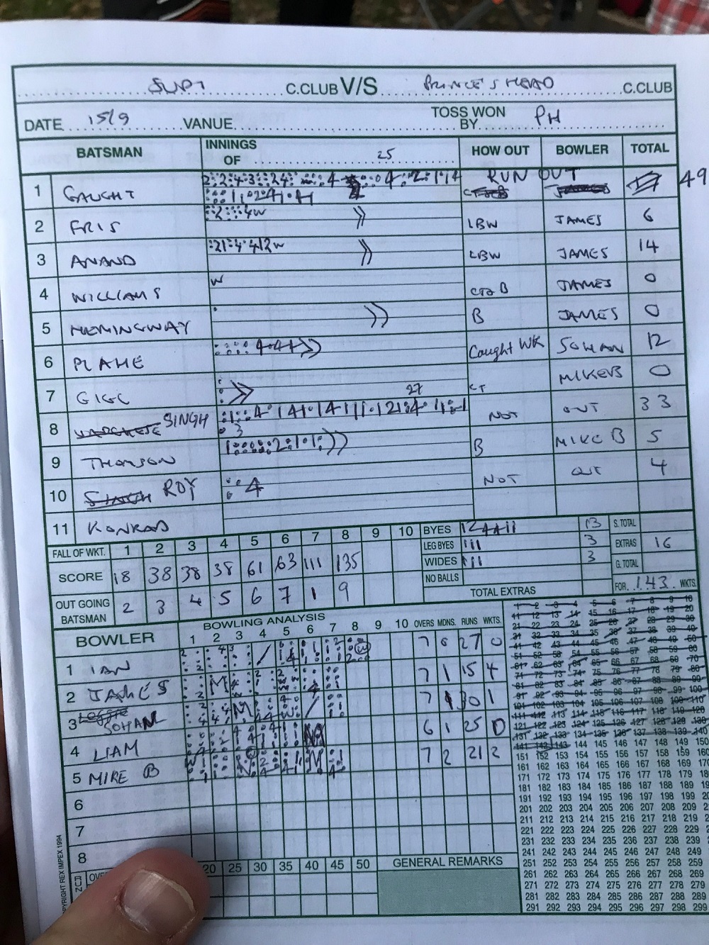 Skipper Gigg typically lost the toss, with Superstars invited to field by the Prince's Head XI, in front of