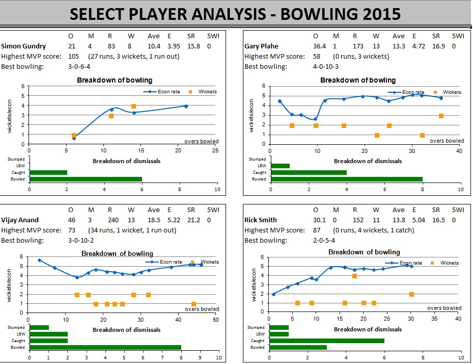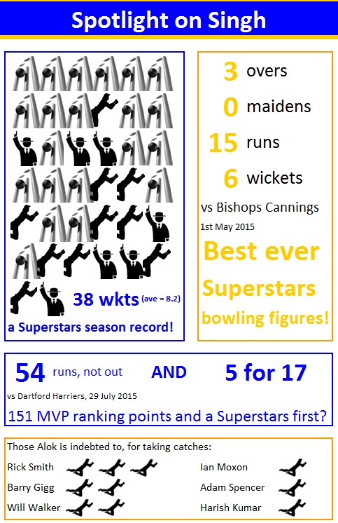 Alok Singh's 3-0-15-6 v Bishops Cannings on 1st May 2015 was the best bowling