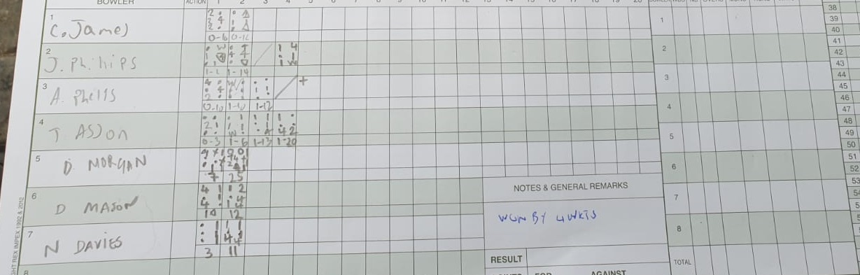 it back well in the middle overs, with Gary and Bish (2-0-9-1) applying the breaks.